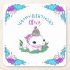 Dessous de verre d'anniversaire de fille Axolotl rose, bleu et violet.
