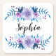 Dessous-de-verre Carré En Papier Aquarelle bleu violet couronne florale Texte perso