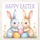 Dessous-de-verre Carré En Papier Aquarelle mignonne lapins de Pâques heureux Pâques