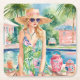 Dessous-de-verre Carré En Papier Aquarelle Preppy Palm Beach Girl à la piscine
