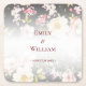 Dessous-de-verre Carré En Papier Aquarelle rose Roses jaunes, noir flou, Mariage