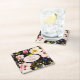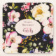 Dessous-de-verre Carré En Papier Aquarelle Roses rose et jaune sur Noir, Anniversai