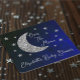 Au-dessus du baby shower de la lune avec la lune d'argent et les étoiles contre un arrière - plan de nuit noir et bleu