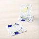 Romantique bleu royal & fleurs blanches avec dessous de verre en papier mariage feuille en argent.
