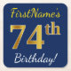 Dessous-de-verre Carré En Papier Blue, Faux Gold 74e anniversaire + Nom personnalis