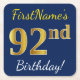 Dessous-de-verre Carré En Papier Blue, Faux Gold 92e anniversaire + Nom personnalis
