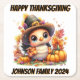Ce superbe design "Bon thanksgiving" présente une adorable dinde de bébé portant un casquette pèlerin, ajoutant une touche fantaisiste et festive au thème Thanksgiving. La dinde est entourée de citrouilles orange vif, de feuilles d'automne et de plumes colorées, le tout dans des tons chauds et invitant à l'automne. Ses grands yeux expressifs et ses plumes douces lui donnent une apparence ludique et mignonne. La scène est rassemblée avec le joyeux texte "Bon thanksgiving" dans une police en gras.