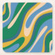 Dessous-de-verre Carré En Papier Boucles ondulées Retro Abstrait Motif bleu vert