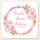 Beautiful sweet sixteen coaster with a bright pink and gold faux glitter frame with floral flower arrangements. Perfect for a sweet sixteen birthday party. The words can be changed to suit your own details or requirements