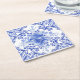 Dessous-de-verre Carré En Papier Carrelage floral bleu et blanc avec oiseau