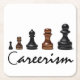 Une ligne de cinq pions d'échecs de tailles différentes, de la plus petite à gauche à la plus grande à droite, en tant que symbole de la croissance de carrière d'affaires. Isolé contre l'arrière - plan blanc. Dessous-de-verre en papier. Vous pouvez y customiser en modifiant ou en supprimant le texte modèle Careerism.