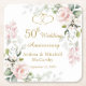 50e anniversaire Mariage dessous de verre avec les images de roses roses, feuillage verdoyant et rejoint les coeurs. Personnalisez avec vos noms et votre date.