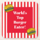 Meilleur mangeur de hamburgers du monde ! Dessous de verre amusant pour toute personne qui aime les burgers ou les gagnants du concours de manger extrême. Bandes rouges et blanches motif avec burgers sur le dessus