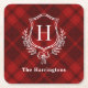 Dessous-de-verre Carré En Papier Crête de monogramme d'hiver à plis rouge initiale