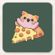 Dessous-de-verre Carré En Papier Custom Kawaii Cat Hugging Pepperoni Pizza Cartoon