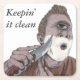 De temps en temps, les monstres ont besoin de se raser et quand ce cyclope grec se tourne vers son couteau de confiance pointu pour s'assurer que le travail de rasage est bien fait. Cette image de monstre d'art imaginaire, peinte avec de la peinture à poster sur stock en carton et surlignée de crayons colorés, montre un cyclope grec se rasant de près avec un couteau très pointu. Un cadeau de ces imaginaires de papier à boissons de l'art est parfait pour quiconque aime garder rasé propre et bien préparé.