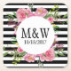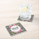 Élégants dessous de verre en papier papier mariage réalisés dans un motif rayé noir et blanc, avec de jolis pivoines roses aquarelles. Une zone de texte arrondie blanche, au milieu du dessous de verre, a un texte noir personnalisé. Personnalisez les monogrammes et la date de mariage de la mariée et du mariée, pour votre mariage ou occasion spéciale.