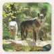 Dessous-de-verre Carré En Papier Deux loups gris dans la forêt