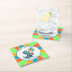 Adorable Personnalisé Boy's Birthday Party dessous de verre papier. Cute thème dinosaure en bleu, orange et vert. De mignons dinosaures caricaturaux tenant des ballons et un gâteau d'anniversaire. Ajoutez le nom et l'âge dans la zone personnalisée.