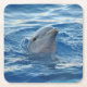 Photograph of dolphin surfacing from a clear blue sea. Party products.