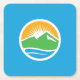 Un dessous de verre en papier avec un design avec le drapeau de Provo, Utah. Un drapeau bleu avec le logo de Provo City au centre. Le logo représente le lac de l'Utah et les sommets de montagne avoisinants avec le soleil levant en arrière - plan