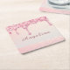 Ajoutez une touche d'éclat à votre table avec ce dessous de verre en papier carré élégant rose pailleté à effet de gouttes. Conçu avec des gouttes de fausses paillettes en cascade sur un fond rose pâle et orné d'un délicat détail de dentelle le long du bas, cet accessoire glamour apporte une touche romantique et stylée à n'importe quel décor. La finition brillante et rosée ajoute une touche luxueuse, parfaite pour recevoir, offrir ou sublimer le quotidien. Personnalisez-le avec un nom pour un ajout unique aux enterrements de vie de jeune fille, aux anniversaires ou à la décoration de maison glamour.