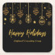 Customisez ces élégants dessous de verre de fêtes d'entreprise avec cet élégant script doré cursif sous un éventail d'ornements de Noël. L'élégante typographie d'un dessous de verre noir moderne ajoute une touche de classe à ce rendez-vous de Noël d'affaires personnalisé. Personnalisez avec le nom de votre entreprise.