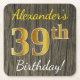 Dessous-de-verre Carré En Papier Faux Wood, Faux Gold 39e anniversaire + Nom person