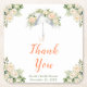 Beau dessous de verre de fête de mariage avec un parapluie blanc et des arrangements floraux pêche et crème. Parfait pour une fête de mariage. Les mots peuvent être modifiés pour s'adapter à vos propres détails ou exigences