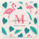 Dessous-de-verre Carré En Papier Feuilles tropicaux Flamant rose rose chaud Monogra