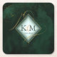 Dessous-de-verre Carré En Papier Fine Lines Gold Abstrait Mariage V2 Emerald ID867