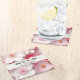 Dessous-de-verre Carré En Papier Fleurs blanches roses nom fête d'anniversaire
