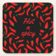 Dessous de verre amusants avec les mots Hot n épicé, et un motif de piments rouges.