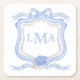 Preppy Wedgewood Monogramme Graduation carré dessous de verre papier avec un endroit pour.un monogramme personnalisé