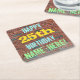 Ce dessous de verre à thème d'anniversaire amusant comporte un message comme "HAPPY 25th BANTHDAY, NAME-HERE!", où le nom peut être personnalisé. L'arrière - plan est représenté par un mur en brique composé de briques de couleur rougeâtre. Le texte du message personnalisable comporte des couleurs comme le bleu, le jaune et le vert, et il a un aspect inspiré de celui des graffitis peints. Des dessous de verre comme ceux-ci pourraient être utiles comme décorations pratiques à une fête d'anniversaire pour quelqu'un qui célèbre son vingt-cinquième anniversaire. [~Z0000288]