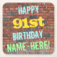 Ce dessous de verre amusant à thème d'anniversaire comporte un message comme "HAPPY 91st BANTHDAY, NAME-HERE !", où le nom peut être personnalisé. L'arrière - plan est représenté par un mur en brique composé de briques de couleur rougeâtre. Le texte du message personnalisable comporte des couleurs comme le bleu, le jaune et le vert, et il a un aspect inspiré de celui des graffitis peints. Des dessous de verre comme ceux-ci pourraient être utiles comme décorations pratiques à une fête d'anniversaire pour quelqu'un qui célèbre son quatre-vingt-dix-unième anniversaire. [~Z0000288]