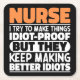 Drôles dictons d'infirmière "Infirmière j'essaie de rendre les choses idiotes mais ils continuent à faire de meilleurs idiots". Prenez ce modèle d'infirmière drôle comme un cadeau drôle pour une maman, papa ou ami génial.