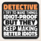 Drôle Détective Dit "Inspecteur J'Essaie De Faire Des Choses Idiot Preuve Mais Ils Continuent À Faire De Meilleurs Idiots". Prenez ce dessin drôle de détective comme un cadeau amusant pour une maman, un père ou un ami génial.