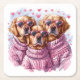 Dessous-de-verre Carré En Papier Jour des Valentines Chiens d'or