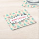 Dessous de verre en papier à thème rétro élégant avec un cadre dessiné à la main fantaisie qui dit Joyeux Noël au centre. Le texte peut être modifié pour dire ce que vous voulez comme un nom ou Joyeuses Fêtes etc... Le design arrière - plan est un motif festif de noël sur une couleur crème. Illustrations de couleurs pastel, bleu-verdâtre, noël, baubles et arcs rose pastel dans un motif répétitif.