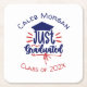 Graduation mot art design caractéristiques texte "juste gradué" avec casquette / mortier en rouge et bleu des couleurs de l'école sur arrière - plan gris. Personnalisez avec le nom du diplômé et l'année de classe