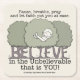 Little Boy est vu dans une pose détendue en haut des arbres illustrant la citation ci-dessus qui nous rappelle de pause, respirer, prier et laisser la foi vous mettre à l'aise. Les formes des troncs de ces arbres épellent le mot "CROYEZ" et la citation, "dans l'incroyable qui est VOUS!" ci-dessous qui complète le proverbe bien connu de David A. Carrizales. Dessin de Christie Black.