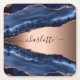 Un fond bleu foncé et rose doré avec impression pierre de marbre agate, Personnalisez et ajoutez votre nom. Le nom est écrit avec un style d'écriture manuscrite moderne avec fioritures.