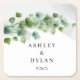 Ce dessous de verre en papier mariage est présenté avec un imprimé d'art feuille de la vigne d'eucalyptus. Customisez cet élément et modifiez l'exemple de texte sur le vôtre. Recherchez nos serviettes en papier et nos assiettes en papier assorties. Image sous licence