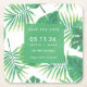 Mariage design feuille tropicale enregistrer les dessous de verre de date, un unique enregistrer la date pour votre prochain mariage. Des feuilles tropicales vertes et blanches aux accents verts peuvent être customisées avec votre date mariage, vos noms et votre emplacement. Ces dates sont parfaites pour votre célébration de mariage sur l'île, tropical ou plage.