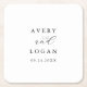 Ce dessous de verre en papier carré élégant de mariage est parfait pour un mariage simple. Le design minimaliste noir et blanc présente une typographie romantique avec style glamour moderne. Personnalisable dans n'importe quelle couleur. Gardez le design minimal et élégant, tel quel, ou personnalisez-le en ajoutant vos propres graphiques et artwork. Personnalisez le étiquette avec les noms de la mariée et du marié et la date du mariage.