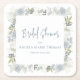 Dessous-de-verre Carré En Papier Mariage Fleurie Bleue Script Personnalisé