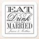 Ces dessous de verre pour mariage moderne "Manger, Boire & être Marié" tendances et uniques sont parfaits pour les réceptions, dîners de répétition, douches de mariage, ou à offrir en cadeau à vos invités. Ajoutez facilement vos noms au design en utilisant la section "Modifier ce modèle" pour rendre ces dessous de verre uniques pour vous et votre célébration.