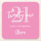 Un dessous de verre simple et moderne de fête de 21e anniversaire avec une élégante typographie de script de calligraphie et un design minimaliste en rose et blanc.