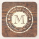 Dessous-de-verre Carré En Papier Monogramme cardiaque Mariage rustique en noix fonc